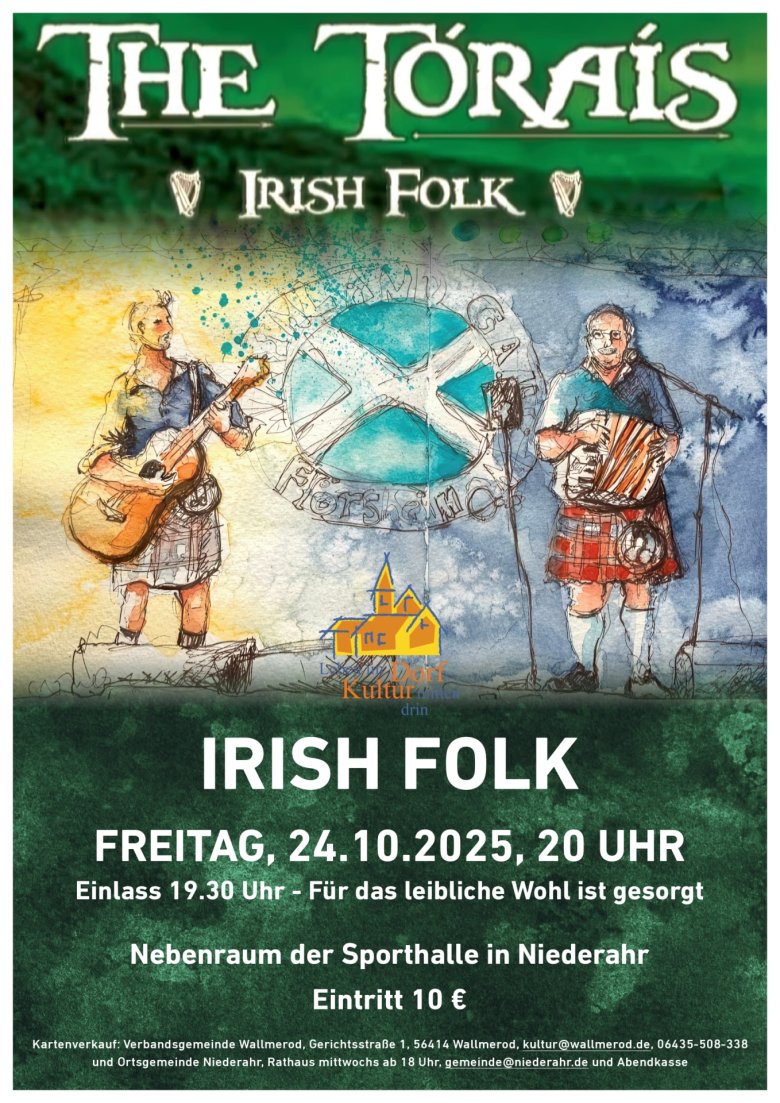 Irish Folk am 24.10.2025 in der Sporthalle Niederahr.