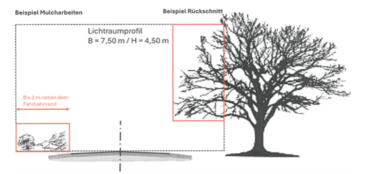 Der Forstzweckverband der Verbandsgemeinde Wallmerod beabsichtigt in Kürze notwendige Lichtraumprofilarbeiten und Mulcharbeiten im Bereich der Waldwege in der Verbandsgemeinde Wallmerod durchzuführen. Konkret handelt es sich um das Entfernen bzw. Zurückschneiden einzelner Bäume und Sträucher, die in das Lichtraumprofil des Weges hineinragen. Anschließend soll der Bereich beidseits auf einer Breite von ca. 2,00 m gemulcht werden.