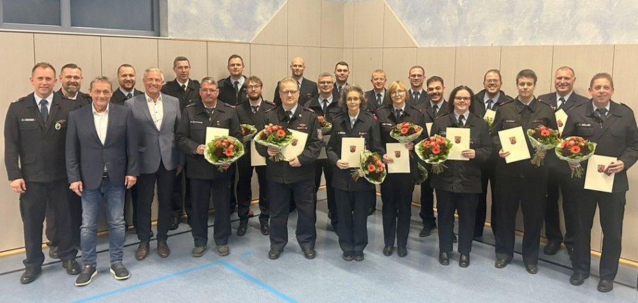Diese gingen in Form des Bronzenen Ehrenzeichens für 15 Jahre Dienstzeit an Fabio Steudter (Hahn am See), Eric Müller, Ömer Yekatli (beide Feuerwehr Bilkheim), Philip Scheuermann (Dreikirchen), Stefan Heyden (Hundsangen), Benjamin Krekel (Steinefrenz), Hendrik Schmitz (Herschbach). Das Silberne Ehrenzeichen für 25 Jahre erhielten Michael Sottong (Elbingen), Thomas Wörsdörfer (Obererbach), Sebastian Rimpler (Bilkheim) und Michael Fasel (Dreikirchen); das Goldene für 35 Jahre Dienstzeit bekamen Alexandra Zeyda (Meudt), Christine Fasel, Sandra Krekel (beide Steinefrenz), Thorsten Müller (Saynbach), Carsten Feiden (Weroth) und in Gold für 45 Jahre Alfred Haberstock (Steinefrenz) verliehen.