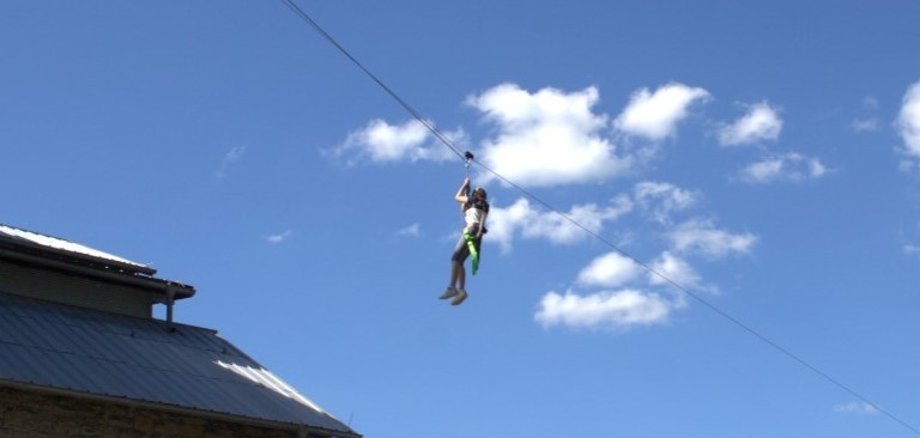 Wir, die Jugendpflege Wallmerod unterstützen das Fest mit einer Attraktion für Mutige. Aus 10 Meter Höhe konnten die Kinder auf einer 45 Meter langen Seilbahn vom Brecheraufweg in die Tiefe rutschen. Dabei schwebten sie über den Köpfen der Besucher hinweg. Natürlich wurden die Kinder zuvor in den Sicherheitsregeln unterwiesen und mit einem Kletterseil gesichert. An dieser Stelle möchten wir uns ganz herzlich beim THW Westerburg für die Unterstützung bedanken, denn als Endpunkt der Seilbahn diente der THW-Kipper. Außerdem möchten wir uns bei allen Ehrenamtlichen des vg4me-Teams bedanken, durch deren Einsatz der Betrieb der Seilbahn überhaupt möglich wurde.