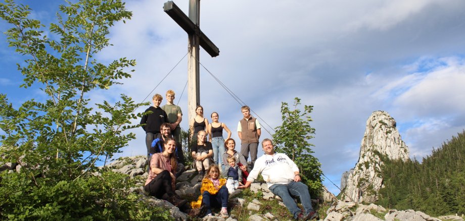 Das wohl aufregendste Erlebnis der Jugendfreizeit war der Ausflug zum Ostgipfel der Kampenwand. Über Klettersteige stieg die Gruppe zunächst zwischen den Felsen der Kampenwand durch und anschließend bis zum Ostgipfel hinauf. Doch am Gipfelkreuz schlug das Wetter um. Geringe Sicht, starker Regen und kräftiger Wind machten den Abstieg zu einer echten Herausforderung. Gemeinsam unterstützten sich die Jugendlichen und schafften es, ohne Sturz zurück zur Kapelle – dem Ausgangspunkt der Rundwanderung.